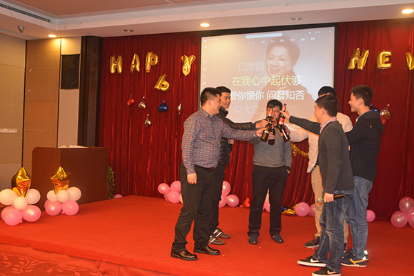 隨后的表演更是讓大家在這個本就歡樂的節(jié)目歡笑四溢。公司每個部門都有自己獨特的才藝,業(yè)務部的吹瓶,客服部的雙簧,電商部的歌曲等。雖然沒有時間排練,但是大家的表演天賦還有相對不錯的。